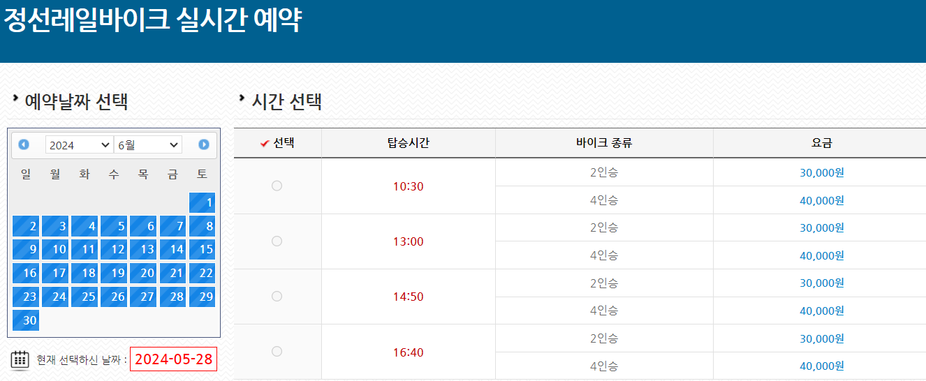 - 현장에서 바로 예약할 수 있으며, 주말이나 사람이 많은 시즌에는 미리 인터넷으로 예약하는 것이 좋습니다.